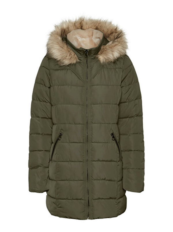 Xhaketë për femra nga marka Vero Moda. Vjen me kapuç të veshur me lesh artificial. Ka fiksim me zinxhir dhe bel me lidhëse. Xhepat përpara janë me zinxhir. Materiali i xhaketës është 100% poliestër me ngjyrë të gjelbër.