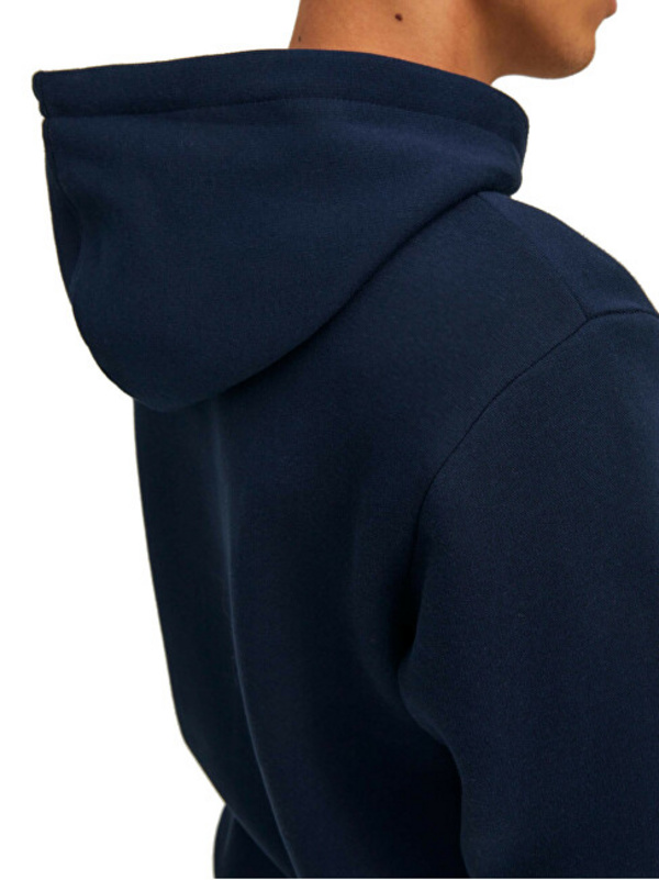 Duks për meshkuj nga Jack&Jones, me prerje të rregullt me një mbishkrim në gjoks. Duksi ka xhep kanguri. Kapela është e rregullueshme me fije tërheqëse. Materiali është 70% pambuk dhe 30% poliestër. Duksi ka ngjyrë të kaltër dhe një dizajn shumë tërheqës që do të duket shumë bukur.