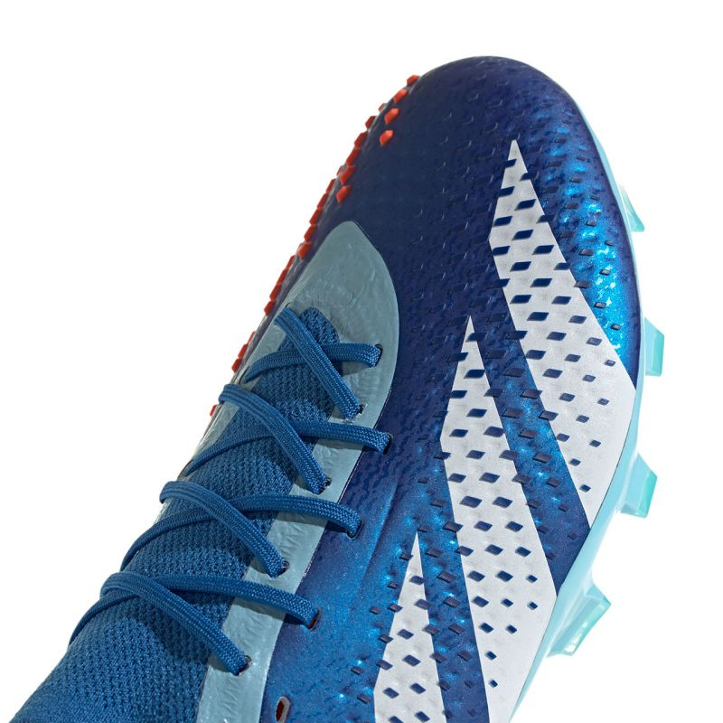 Atlete Futbolli për meshkuj Adidas Predator Low AG janë pjesë e koleksionit Marinerush Pack, të dizajnuara për kontroll të pakrahasueshëm të topit falë zonës High Definition Grip me seksione gome strategjike. Pjesa e sipërme HybridTouch sintetike dhe tekstile ofron profil të ulët dhe lidhje asimetrike. Taban fleksibël me dy pllaka teknike dhe forma e ndryshme e thonjëve siguron stabilizim të këmbës gjatë lëvizjeve të shpejta në bar artificial. Ngjyra: blu.