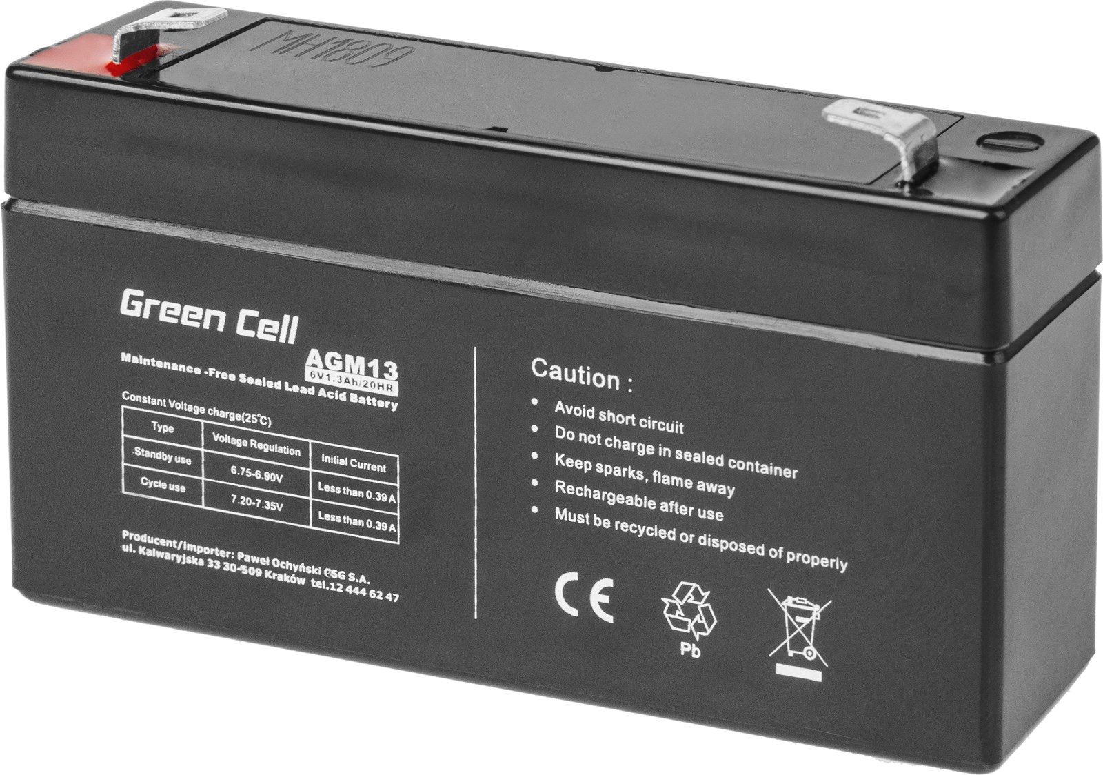 Bateri Green Cell AGM VRLA (AGM13), 6V/1.3Ah
