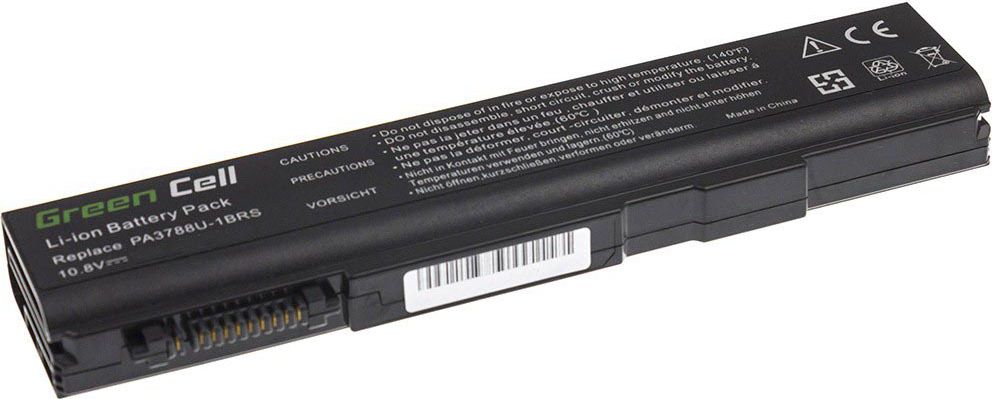 Bateri origjinale Green Cell përsosmërisht e përputhshme e bërë prej materialeve me kualitet më të lartë, që përmban qeliza Green Cell me dendësi të lartë. Secila bateri është model i dedikuar për një model specific të laptopëve dhe është e dizajnuar me vëmendje në detajet më të vogla. Ofron mbrojtje nga mbikarikimi dhe shkarkimi i thellë dhe mbrojtje nga qarqet e shkurtra. Kur vërehet një kërcënim i qarkut të shkurtës, bateria automatikisht ndërpret qelizat dhe sistemin elektronik. Rezistencë ndaj temperaturës. Kontrolli i temperaturës i bën qelizat të punojnë në temperaturë të sigurtë. Qelizat Green Cell janë qeliza efikase me kapacitet të vërtetë, të barabartë me origjinalet. Poashtu, falë përdorimit të qelizave me kualitet të lartë, bateritë Green Cell arrijnë kapacitet të vërtetë prej 4400 mAh. Përveç kësaj, lidhjet karakterizohet prej qëndrueshmërisë së lartë në nivel prej 500 cikleve të plotë. Kjo bateri i zëvendëson modelet PA3786U-1BRS, PA3787U-1BRS, PA3788U-1BRS, PABAS221, PABAS222, PABAS223.
