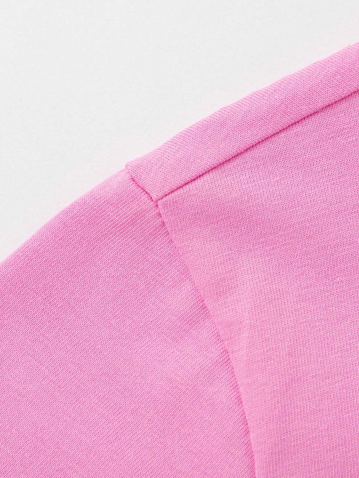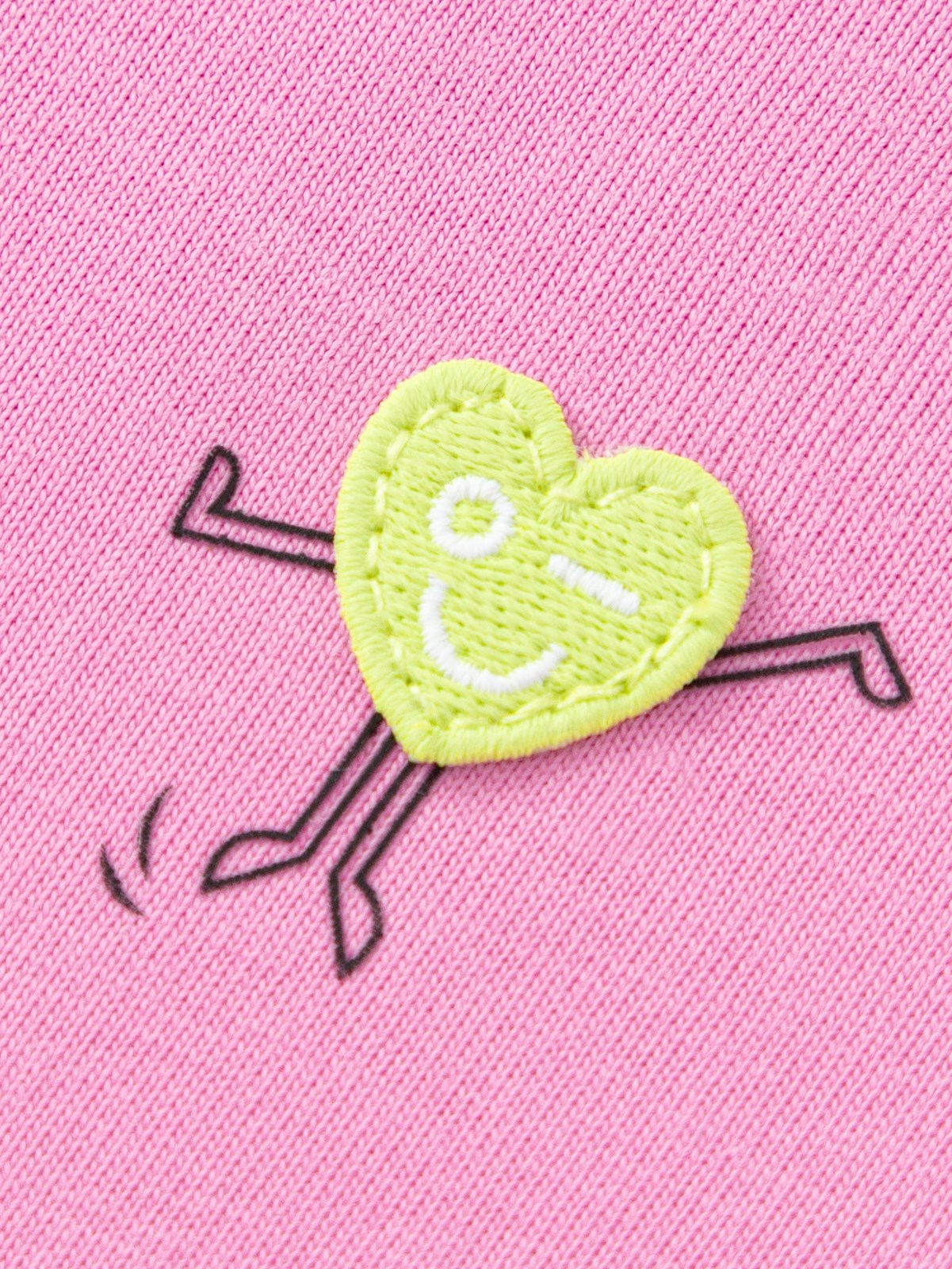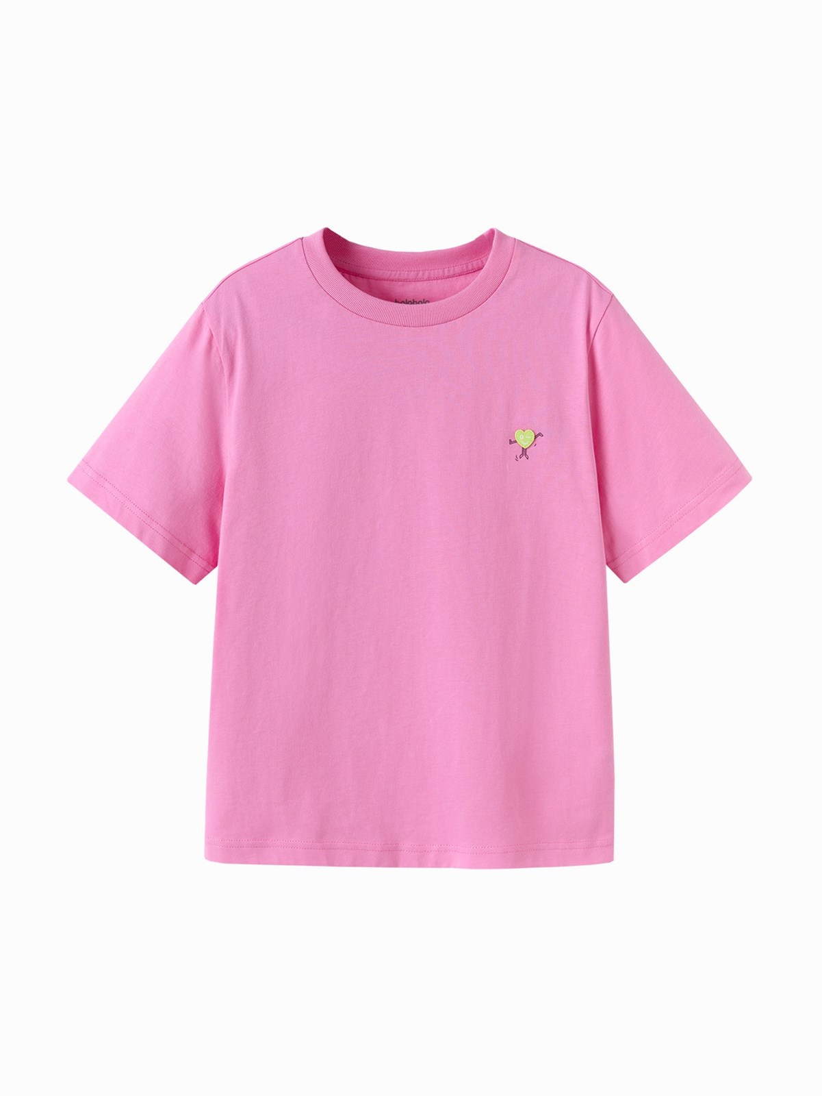 Let the joy bounce out of every step! The Happy Heart Tee is here to add a burst of pink sunshine to your little ones day playful, comfy, and embroidered with a lime green heart thats literally leaping with happiness! Made from soft, breathable cotton gentle on skin Cheerful embroidered heart detail for extra personality Easy care, easy wear machine washable and durable Relaxed fit for all kinds of movement (and mischief) Ribbed neckline for a snug-but-stretchy feel Built for play, made with love. Because happy hearts make happy kids.