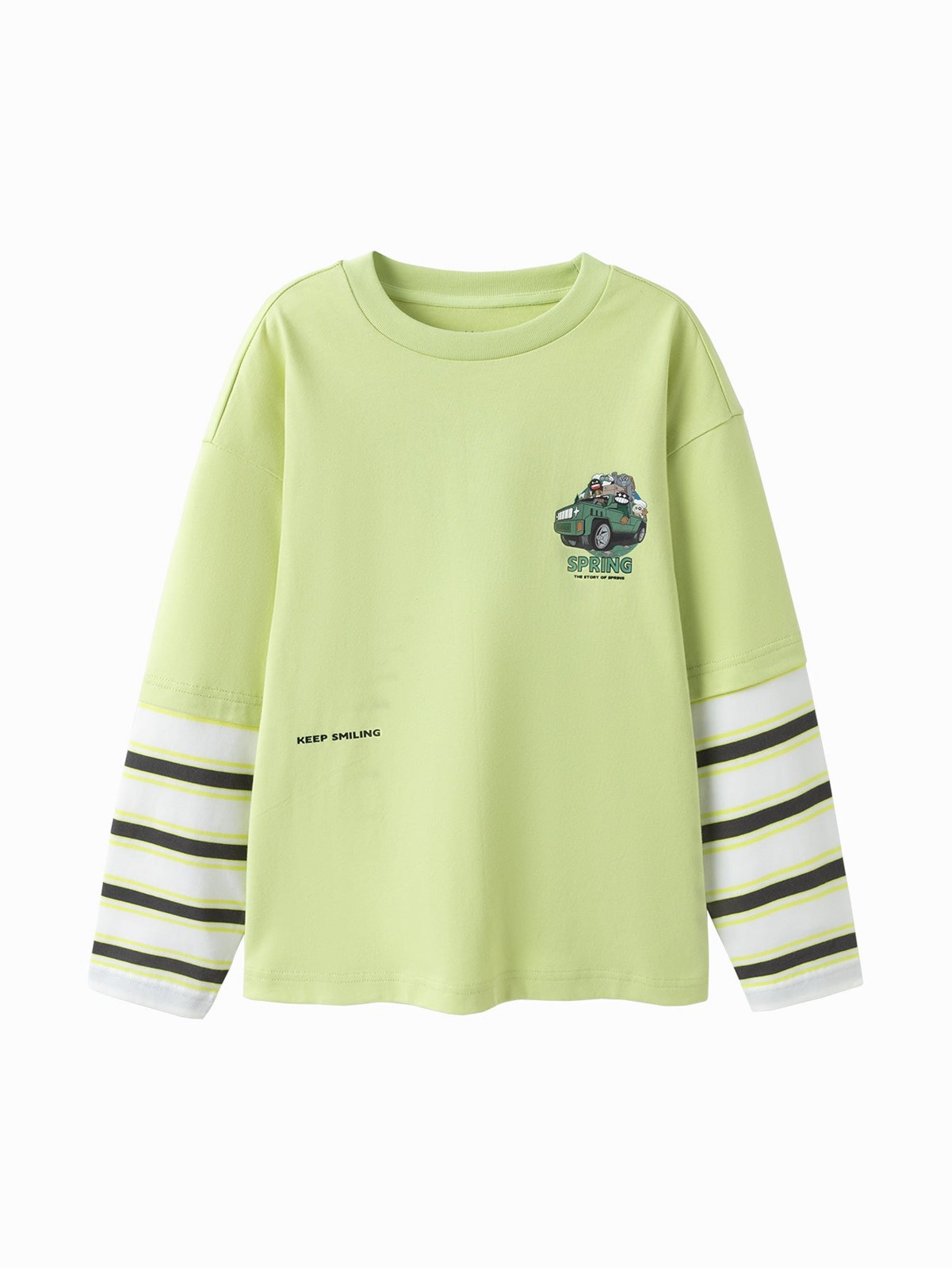 Let the wild adventures roll! The Spring Safari Tee is perfect for tiny explorers with big imaginations and a love for the outdoors. Safari-themed print with a jeep full of forest friends Soft pistachio green base cheerful and fresh Cozy cotton blend thats gentle on sensitive skin Stripey long sleeves add a playful sporty twist Durable and easy to wash ready for repeat fun For little rangers who love the journey as much as the destination. 100 Moncoco joyride.
