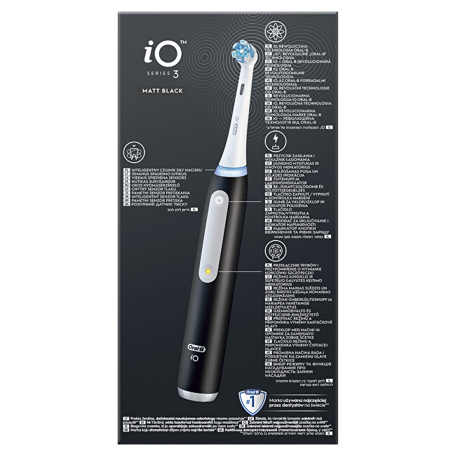 Brusha e dhëmbëve elektrike Series iO 3 Black pastron në mënyrë efektive dhe të butë dhëmbët, duke hequr pllakën bakteriale dhe papastërtitë për një buzëqeshje më të shëndetshme. Teknologjia inteligjente e lëvizjes rrotulluese dhe pulsative siguron pastrim të thellë edhe në zonat më të vështira për t’u arritur. Ekrani LED dhe sensorët e presionit ndihmojnë në përdorimin e saktë, duke mbrojtur mishrat e dhëmbëve. Dizajni elegant në ngjyrë të zezë e bën funksionale dhe estetike njëkohësisht.
