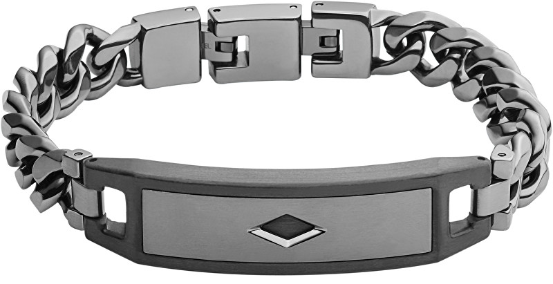 Byzylyk ekstravagant për meshkuj nga marka e njohur amerikane Fossil. Ai është përpunuar nga çeliku shumë cilësor në dizajn masiv me përfundim në PVD në ngjyrë të zezë, dekoruar me një pjesë atraktive me detaje në ngjyrë gri dhe përmasa 5.3 x 1.3 cm. Ky aksesor elegant ka gjatësi 21 cm, gjërësi 1.3 cm dhe vjen me kuti të vetën.