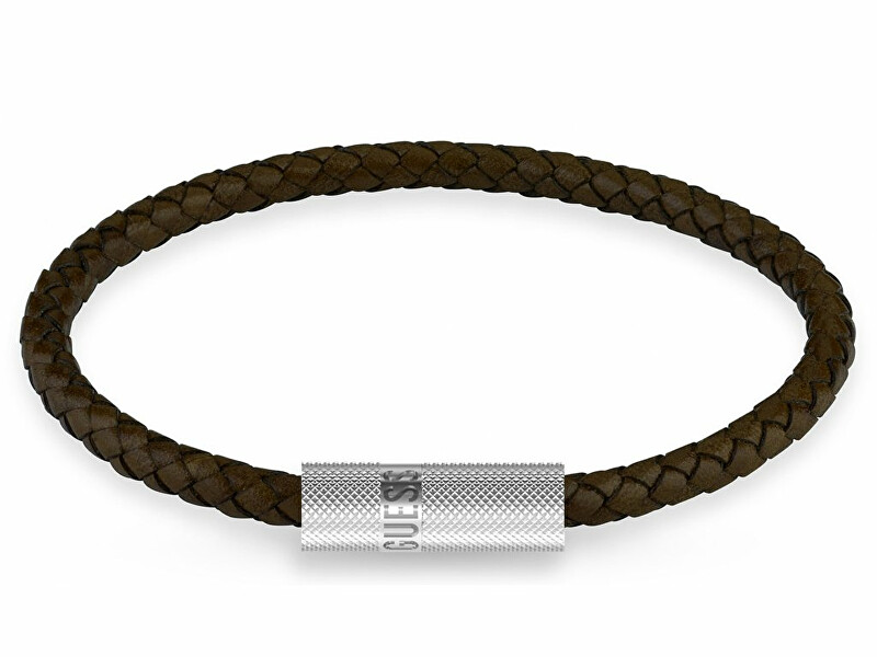 Byzylyk modern për meshkuj nga marka Guess është punuar nga lëkura cilësore e kaftë. Dekoruar me një stoli prej çeliku që fsheh një mbyllje magnetike.