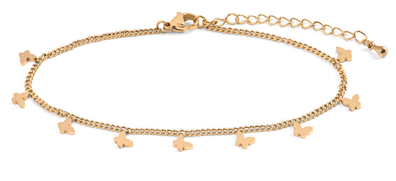 Byzylyku delikat për kyçin e këmbës me pllakë ari dhe flutura nga Troli është një aksesor elegant për femra. I punuar nga çelik cilësor dhe i veshur me ar të verdhë, ai zbukurohet me varëse të vogla në formë fluture, duke i dhënë një prekje të lehtë dhe të sofistikuar. Gjatësia e byzylykut është 21 cm, me mundësi zgjatjeje deri në 5 cm, ndërsa mbyllja klasike me karabin siguron rehati gjatë përdorimit. Ky aksesor i përkryer do të ndriçojë çdo veshje verore, duke i shtuar një stil të përhershëm dhe delikat.