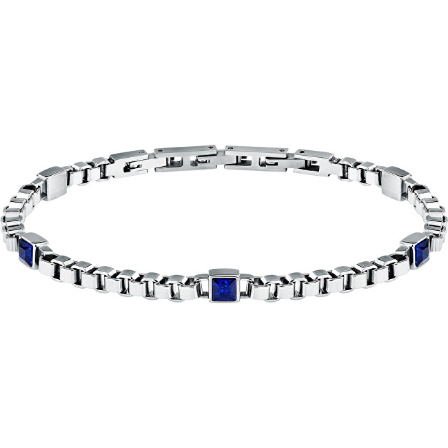 Byzylyku për meshkuj Morellato Urban SABH43 është një aksesor modern dhe elegant, i punuar nga çelik cilësor kirurgjik në ngjyrë argjendi. Ai është i zbukuruar me tre zirkone blu të prerë me precizion, duke i shtuar një prekje sofistikimi dizajnit të tij. Gjatësia e byzylykut është 21 cm, me mundësinë e shkurtimit deri në 3 cm duke hequr një hallkë, duke e bërë të përshtatshëm për madhësi të ndryshme kyçi. Mbyllja me kapëse siguron një mbajtje të sigurt dhe të rehatshme. Ky byzylyk është ideal për të shtuar një element stili dhe elegance në paraqitjen tuaj të përditshme ose në raste të veçanta.