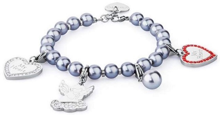 Byzylyku është bërë nga çeliku cilësor i cili i reziston ndryshkjes dhe nuk shkakton alergji. Ai është i zbukuruar me perla sintetike me ngjyrë të kaltër, pamjen e të cilit e kompleton guri në formë zemre që bart si mbishkrim emrin e brendit. Gjatësinë e byzylykut mund ta rregulloni sipas dëshirës, nga 18 në 19.5 cm.