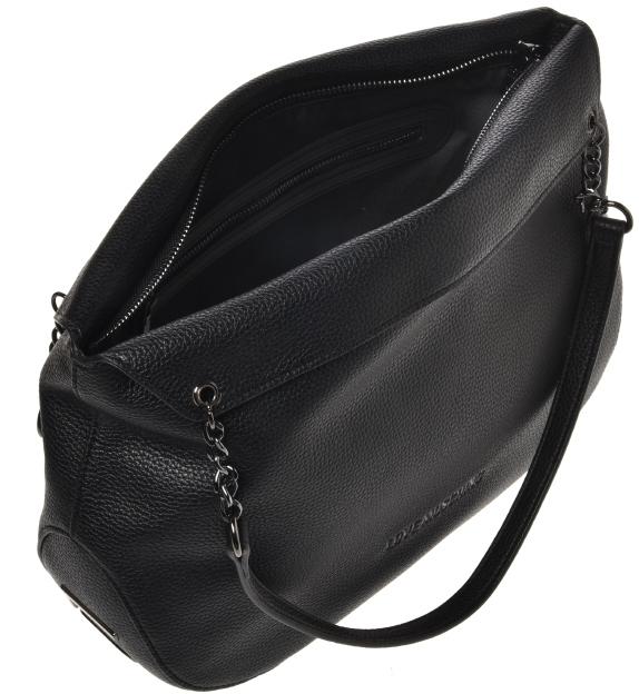 Çanta për femra nga Love Moschino është punuar nga materialet e qëndrueshme sintetike. Ka hapësirën kryesore që mbërthehet me zinxhir dhe një xhep të brendshëm me zinxhir. Mund ta bartni me anë të dorezës.