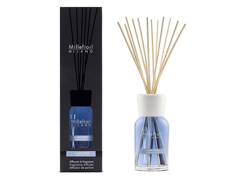 Ky difuzer elegant është frymëzuar nga bukuria e kristaleve të pastra, duke sjellë një aromë të sofistikuar dhe tërheqëse në çdo hapësirë. Shënimet e para hapen me freskinë e sytheve të rrushit të zi dhe dafinës, të cilat shndërrohen më pas në një zemër aromatike me trëndafil, ylang ylang dhe lule portokalli. Fundi i kompozimit përmbyllet me nota të buta irisi, myshku dhe ambrë, duke krijuar një harmoni të përsosur. Shishja prej qelqi, e kompletuar me majën prej qeramike të bardhë dhe shkopinjtë e ratanit në ngjyrë natyrale, i jep produktit një pamje moderne e dekorative. Me një kapacitet prej 500 ml dhe 12 shkopinj aromatizues 35 cm të gjatë, ky difuzer është veçanërisht i përshtatshëm për hapësira të mëdha dhe siguron qëndrueshmëri të aromës për 6–7 muaj. Pas përfundimit, shishja mund të lahet dhe të rimbushet lehtësisht me aromë të re, duke krijuar gjithmonë një atmosferë të këndshme e mikpritëse në shtëpi.
