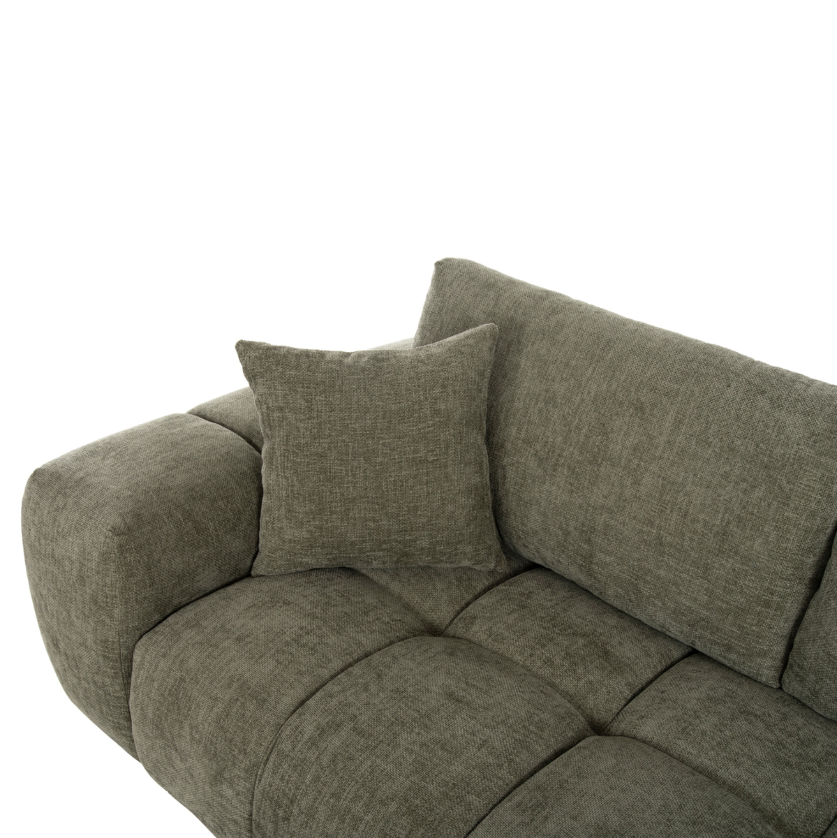 Ky mobilje është një shembull mahnitës i dizajnit modern dhe funksionalitetit. Me një estetikë të veçantë dhe një ngjyrë të gjelbër tërheqëse, ky mobilje do të sjellë freski dhe gjallëri në çdo dhomë ndenjeje. Dizajni i ulët në stilin "apron" dhe këmbët e gjera e të shkurtra në ngjyrë të zezë, i japin një pamje elegante dhe të sofistikuar. Krahët e gjerë dhe tapiceria me qepje të guximshme quilted krijojnë një pamje unike dhe tërheqëse. Pjesa e këndit është e lidhur me mobiljen kryesore përmes varëseve vertikale, duke ofruar një pamje të përbashkët dhe harmonike. Mbështetësja e ulët e shpinës është e pajisur me jastëkë mbështetës të gjatë dhe të hollë për rehati të shtuar, së bashku me jastëkë dekorativë që shtojnë një prekje të stilit. Sedilja me mbushje shkumë me fortësi mesatare, e kombinuar me susta xhepi, garanton rehati të pakrahasueshme. Për më tepër, kjo mobilje vjen me një garanci 3-vjeçare për kornizën, duke siguruar qëndrueshmëri dhe cilësi të lartë. Përbërësit e saj janë realizuar nga druri i pishës dhe eukaliptit, duke ofruar një kombinim të qëndrueshmërisë dhe estetikës. Për mirëmbajtje, një fshirje e thjeshtë me një leckë të lagur është e mjaftueshme për pastrimin e njollave të thjeshta, ndërsa për njollat më të vështira, rekomandohet pastrimi kimik. Mos përdorni pastrues kimikë. Mobilja dorëzohet në paketim fabrikë, e pa montuar, dhe ngjyra mund të ndryshojë pak nga ajo që shihni në ekranin tuaj.