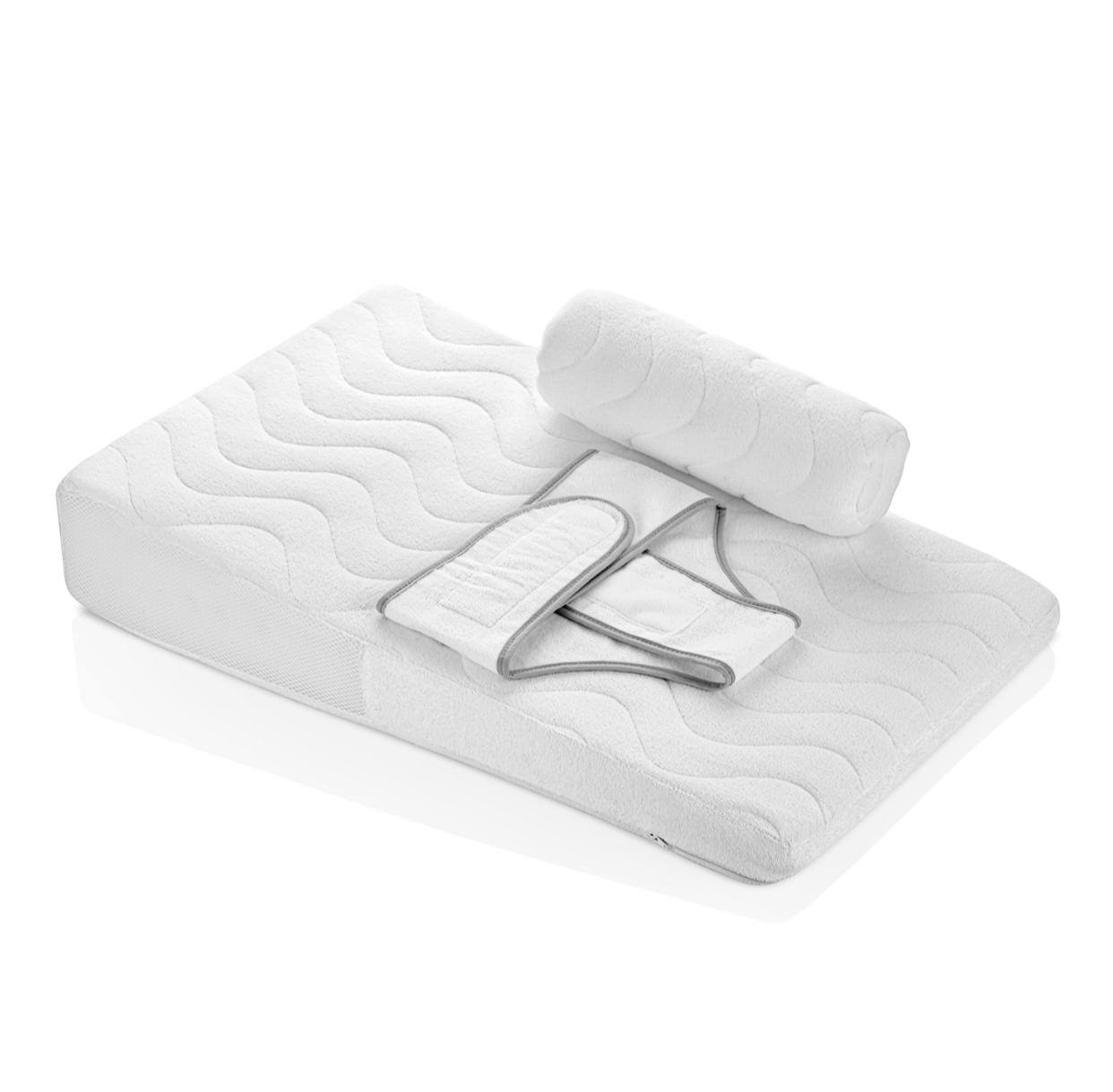 Përshkrimi: Dyshek Multifunksional Reflux është krijuar për të ndihmuar foshnjat që vuajnë nga refluksi duke ofruar mbështetje të pjerrët që mban kokën më lart se trupi, duke parandaluar kthimin e acidit të stomakut në ezofag. Ky jastëk është pajisur me një rrip sigurie dhe jastëkë anësorë për të siguruar qëndrimin e foshnjës në vend dhe për të parandaluar rrotullimin.