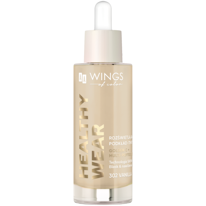 AA Wings of Color Healthy Wear /302 Vanilla është një fondatinë lënguese me efekt ndriçues (“illuminating” / “glow mixer”) që kombinon përmirësimin e pamjes me përkujdesje për lëkurën. E dizajnuar për të dhënë një pamje natyrale, të freskët dhe të shëndetshme, pa dukur e rëndë ose si “maske”.