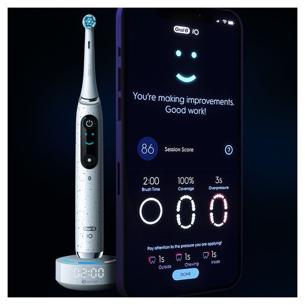 Furça elektrike iO me teknologji magnetike iO ofron një përvojë pastrimi profesionale dhe të butë, falë kokës së rrumbullakët dhe mikro-vibracioneve që pastrojnë në thellësi dhe përmirësojnë shëndetin e mishrave brenda një jave. Ekrani interaktiv tregon mënyrat e pastrimit dhe kujtesën për ndërrimin e kokës, ndërsa inteligjenca artificiale dhe funksioni i gjurmimit 3D ju ndihmojnë të pastroni çdo zonë. Sensori i presionit dhe karikuesi inteligjent iOSense sigurojnë pastrim të saktë dhe karikim të shpejtë në 3 orë. Pajisja ka 7 mënyra pastrimi dhe bateri që zgjat deri në 2 javë. Përdoreni sipas udhëzimeve.
