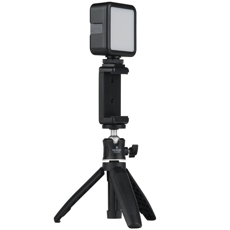 The Genesis Vlog Set was created to facilitate the work of vloggers and youtubers. It includes the VL49 compact LED light, a tripod that can also be used as a selfie stick, and a phone holder. All of the elements combined give you the perfect tool for creating vlogs with your smartphone.