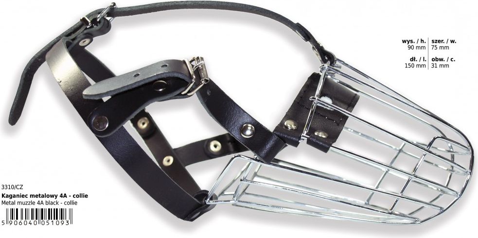 Grykë metalike për qen Dino - 4a Collie, e zezë