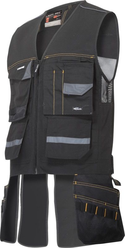 Jelek montimi nga 35% pambuk, 65% poliestër 270g/m2, 100% poliester Oxford 600D 210g/m2, 100% poliester Dobby Oxford 310g/m2. Jeleku ka 21 xhepa, duke përfshirë 2 të mbyllur me zinxhir. Në trup ka xhepa të varur lirshëm për të rritur rehatinë gjatë punës. Xhepat montues nga materiali i fortë poliestër Oxford 600D janë me mundësi fiksimi brenda jelekut. Xhepa montues përpara me përforcim shtesë të bërë nga materiali poliestër Dobby Oxford kanë sythe për aksesorët. Jeleku ka dhe një lak për çekiç dhe sythe anësore Velcro për bashkimin e aksesorëve shtesë. Xhepi i telefonit celular i siguruar me pëlhurë reflekton rrezatimin elektromagnetik. Ka një xhep ID. Jelek mbyllet me zinxhir. Rrjeta në pjesën e pasme rrit komoditetin e punës në temperatura të larta. Insertet reflektuese rrisin sigurinë gjatë punës.