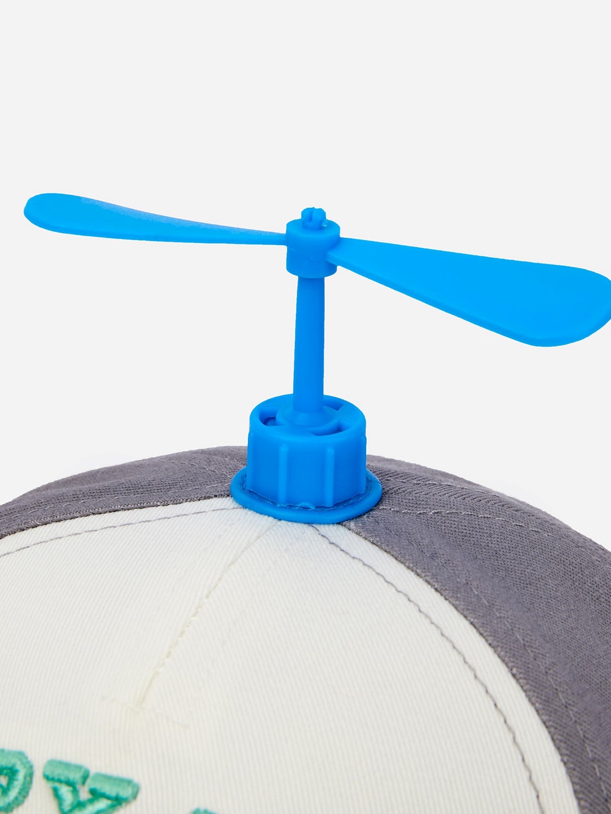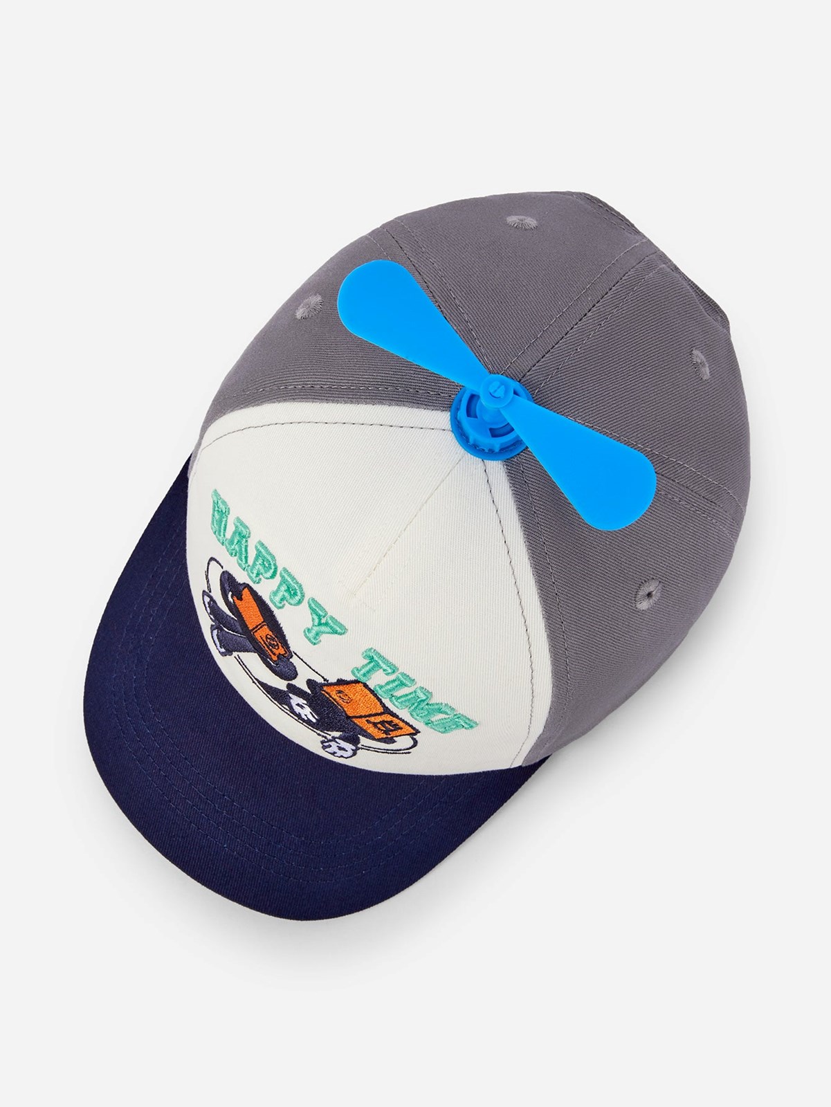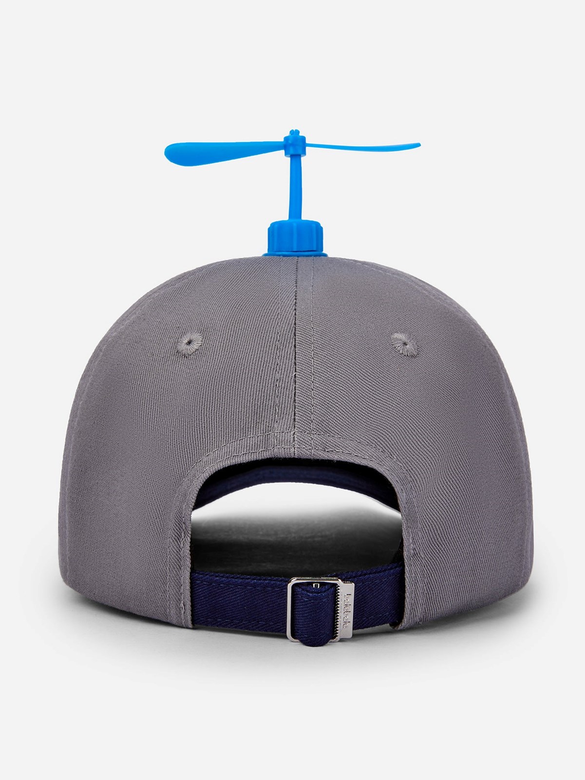 Warning: may cause uncontrollable giggles and spontaneous lift-offs. The WhirlyHappy Hat is here to turn every sidewalk into a runway . With a sky-blue spinning propeller and "HAPPY TIME" stitched like a celebration, this hat is part fashion, part flight deck.