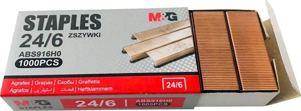 Kapëset e galvanizuara M\&G 24/6 vijnë në një pako prej 1000 copësh për kapje të besueshme të përditshme. Të dizajnuara për kapëse standarde, ato ofrojnë depërtim të butë dhe lidhje të sigurt. Veshje e galvanizuar i reziston ndryshkut dhe rrit qëndrueshmërinë me kalimin e kohës. Perfekte për organizimin e dokumenteve në zyrë, shkollë ose shtëpi. Skajet e punuara me precizion sigurojnë performancë pa bllokime dhe rezultate të pastra. Një zgjedhje praktike dhe afatgjatë për detyra të vazhdueshme kapjeje.