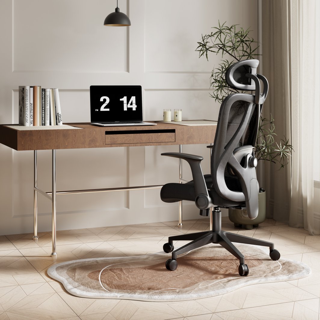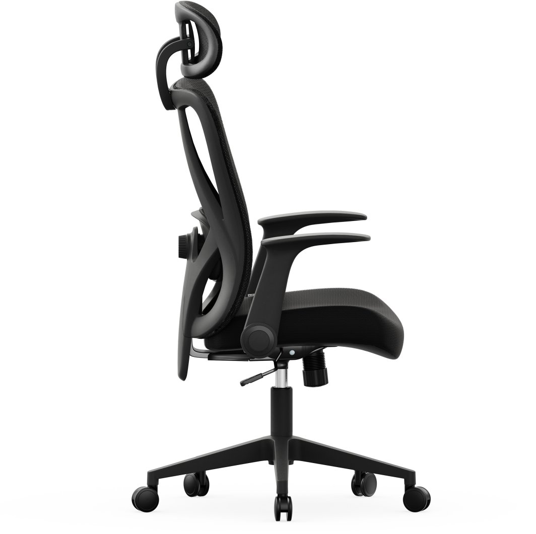Krahët 2D mund të ngrihen deri në 90° për më shumë liri lëvizjeje dhe për të kursyer hapësirë nën tavolinë. Ulësja është e mbushur me shkumë të dendur D30 me trashësi 68 mm dhe e veshur me rrjetë të frymëmarrjes, duke garantuar komoditet dhe freski edhe gjatë orëve të gjata të qëndrimit ulur.