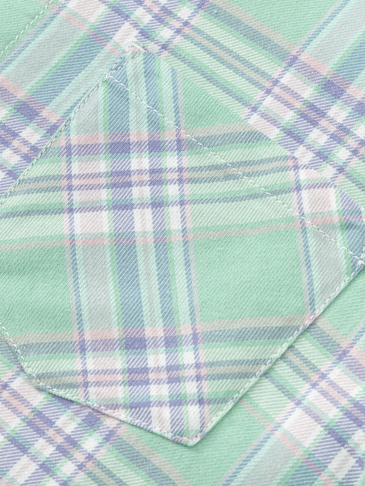Fresh like spring mornings and minty lemonade sips the Garden Breeze Shirt is here to soften up your little ones wardrobe . With a dreamy pastel green plaid and whisper-light fabric, its the perfect mix of comfy and charming.