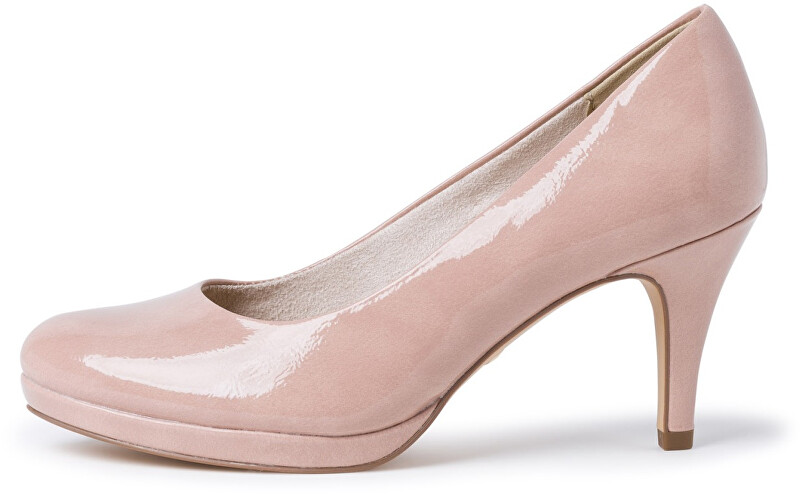 Këpucë të bukura Tamaris, të punuara nga sintetika dhe tekstili. Vijnë në ngjyrë rozë shkëlqyese, me takë të lartë 8 cm. Këto taka janë ideale për përshtatje me fustane, funde apo edhe xhinse.