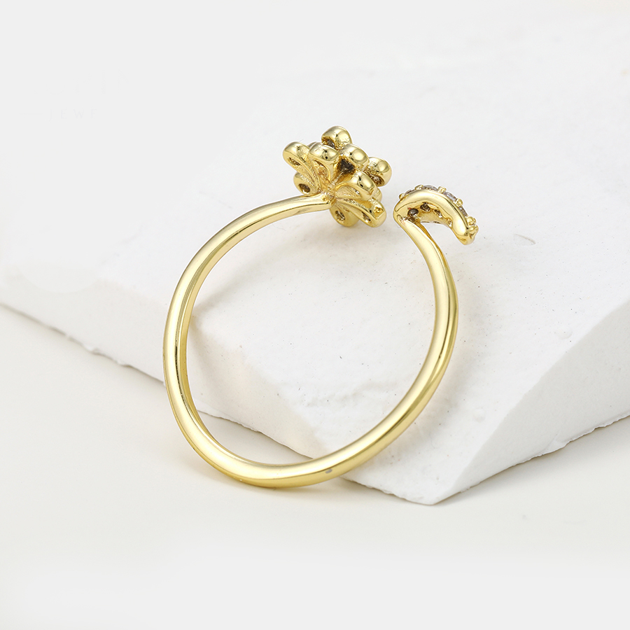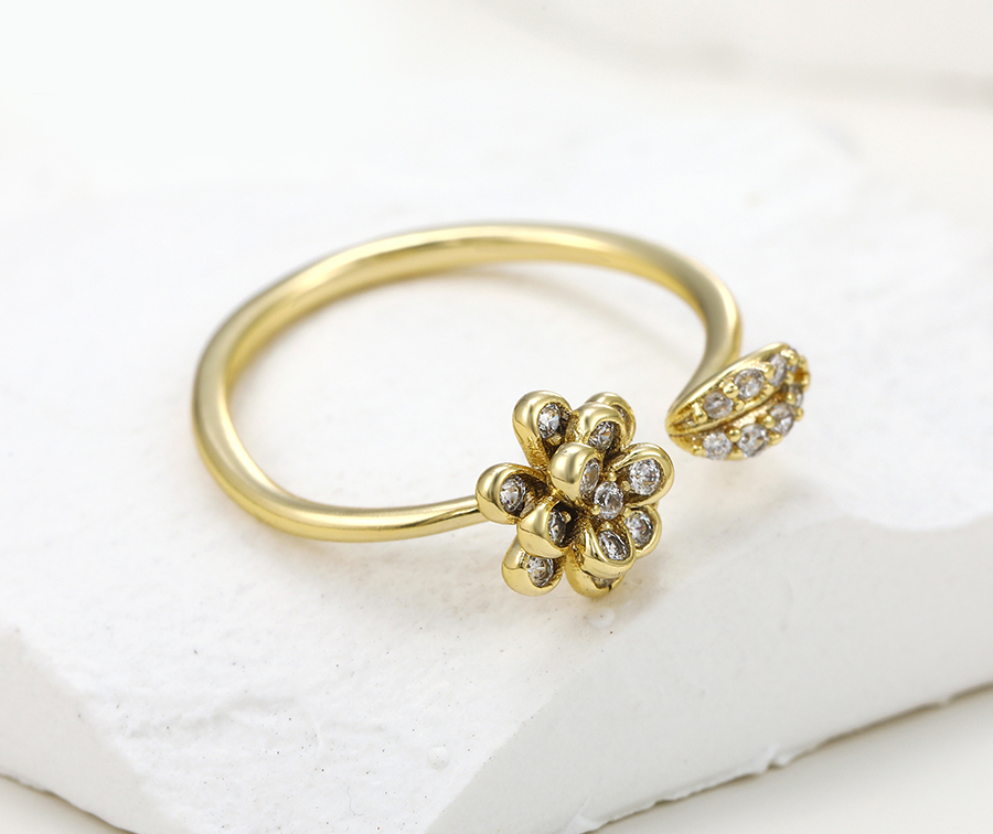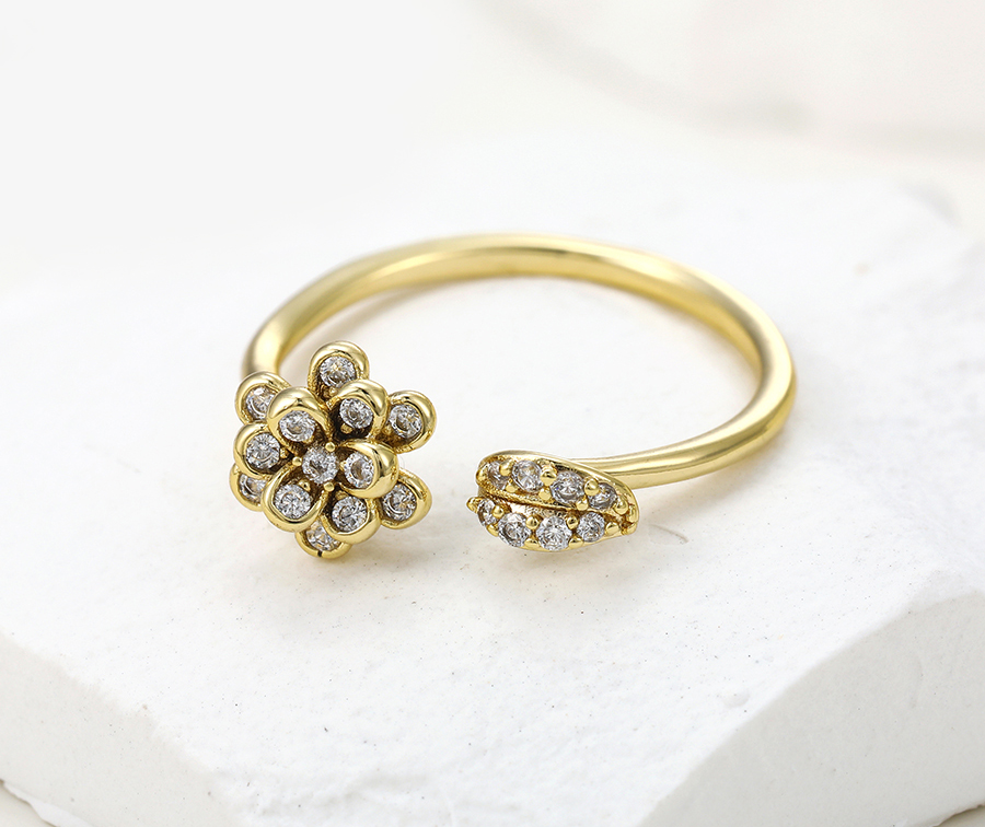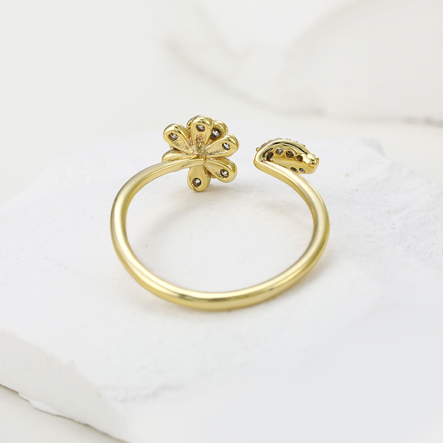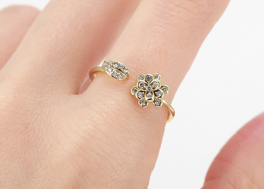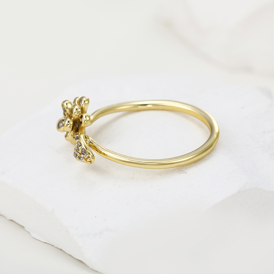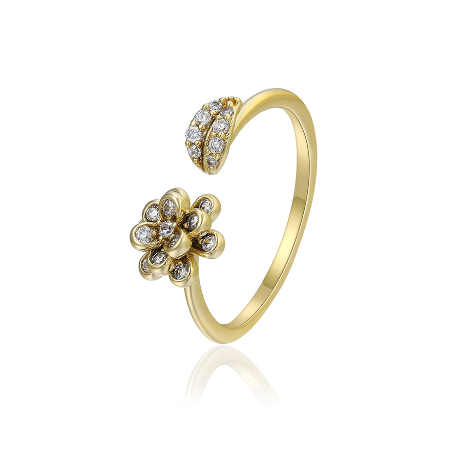 Unazë e hapur e praruar në 14 karat ar, me gurë të bardhë sintetik. Elegante me dizajn modern. Unaza është e hapur dhe iu përshtatet të gjitha madhësive.