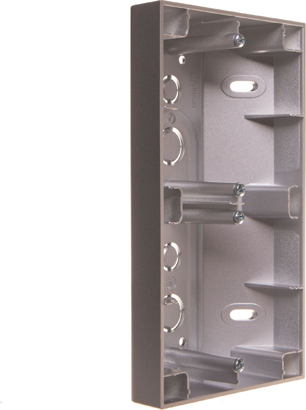 Kuti këndi sipërfaqësore Simon 54 DPNR2/43 është pajisje me dy module për montim sipërfaqësor në mur, e dizajnuar për instalime të fuqishme në skaje me instalim horizontal ose vertikal dhe mbrojtje IP20 materiali është plastikë pa halogjen PC me sipërfaqe mat metalizuar që i jep ngjyrë e metalike dhe rezistencë ndaj gërryerjes dhe dëmtimit ndërsa dimensionet e produktit janë 153 × 87 × 58 mm dhe thellësia e brendshme 38 mm për pajisje standarde elektrike instalimi bëhet me vida dhe është i përshtatshëm për përdorim në rrethana standarde elektroinstalimi duke siguruar fiksim të qëndrueshëm dhe jetëgjatësi të lartë.
