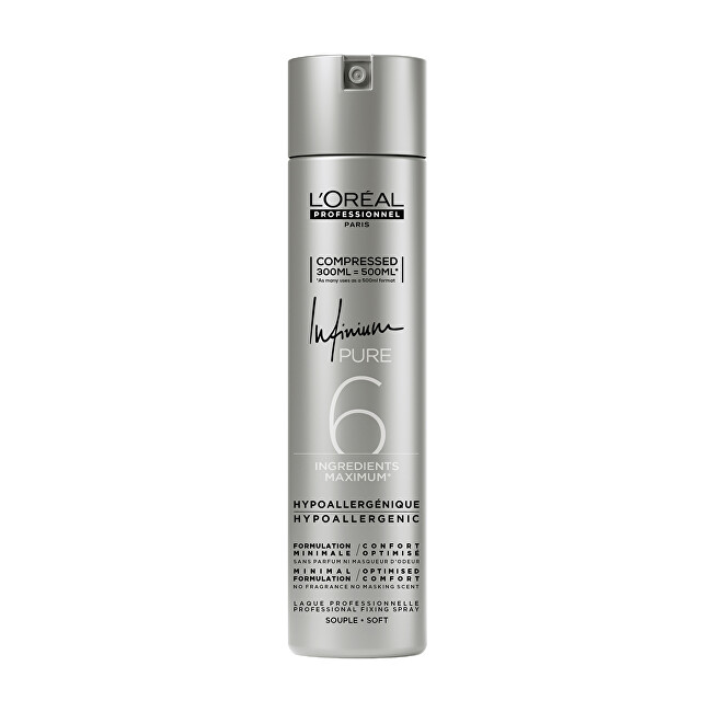 L'Oréal Professionnel Infinium Pure Soft Hairspray është një lak flokësh profesional që ofron mbajtje të butë dhe natyrale, duke ruajtur shkëlqimin dhe lëvizshmërinë e flokëve. Kjo formulë hipoalergjike është e krijuar për të minimizuar rrezikun e reaksioneve alergjike, duke e bërë atë të përshtatshëm për lëkurën e ndjeshme. I pasur me një formulë pa aromë, ky sprej nuk ka asnjë aromë ose maskues aromash, duke siguruar komoditet maksimal gjatë përdorimit. Ai siguron mbajtje të butë dhe natyrale, duke lejuar lëvizshmërinë e flokëve pa i ngurtësuar ato dhe ruan stilin e flokëve edhe në kushte lagështie. Për përdorim, mund ta spërkatni mbi flokët e stiluar nga një distancë rreth 35 cm për mbajtjen e dëshiruar dhe për më shumë kontroll, mund ta spërkatni një herë tjetër. Ky produkt është ideal për ata që kërkojnë një lajkë flokësh efektive, të butë dhe të sigurt për përdorim të përditshëm.