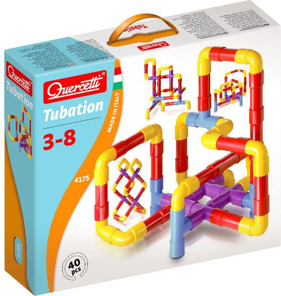 Tubat shumëngjyrëshe nga marka Quercetti, janë tuba me të cilat mund të krijoni modele të thjeshta dhe të ndërtoni struktura komplekse tre-dimensionale. Me ndihmën e 4 llojeve të tubave (të drejtë, rrotullues, të përkulur dhe të kryqëzuar), fëmijët mund të ndërtojnë figura, labirint, skela dhe struktura të tjera. Lodra stimulon imagjinatën, inkurajon të menduarit krijues dhe kreativitetin dhe zhvillon aftësi të sakta motorike. Lodra është prej plastike të cilësisë së lartë, është e sigurt sepse nuk përmban pjesë të vogla. Mosha e rekomanduar 3 .