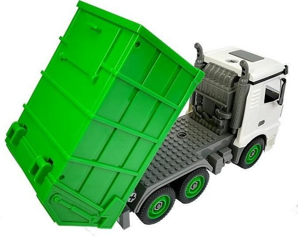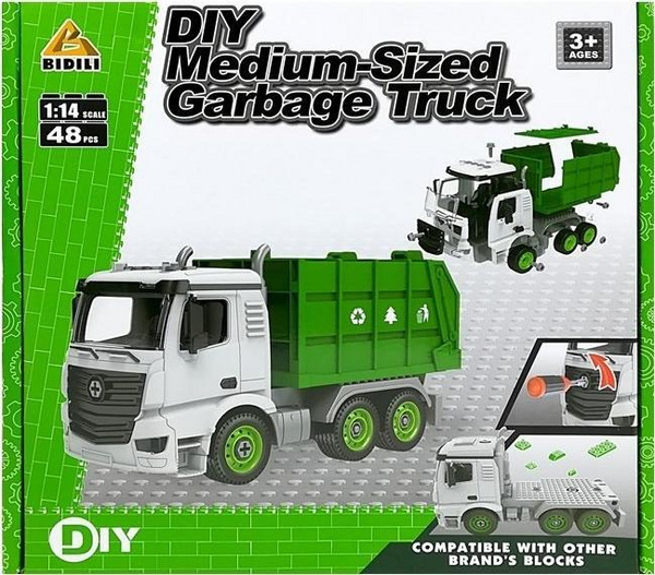 Renditja e kockave si dhe të luajnë me automjete të mëdha, është aktiviteti i preferuar i shumë djemve. Me anë të kësaj lodre, tani fëmijët kanë mundësinë ta ndërtojnë automjetin që nga e para. Kamionin e hedhjes së mbeturinave, duhet ta ndërtoni përmes tullave, sipas renditjes suaj. Pjesët lëvizëse të kësaj lodre së bashku me rrotat janë të bëra nga plastika e cila lehtësisht rregullohet me anë të kaçavidës dhe bulonave, që janë në kutinë e kësaj lodre. Automjeti ka 6 rrota, të cilat rrotullohen lehtësisht, duke ju mundësuar që ta ngisni atë në sipërfaqe të rrafshta. Kjo lodër posedon bagazhin që i mundëson fëmijës mbushjen e tij dhe transportin, me lodra tjera. Për shkak që posedon pjesë të vogla, kjo lodër nuk është e lejuar për fëmijët nën moshën 3 vjeçare.