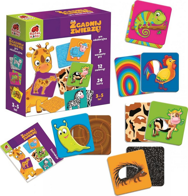 Kjo lojë ndihmon fëmijët tuaj të njihen me kafshët dhe ngjyrat e tyre. Kërkoni për llojet e ndryshme të kafshëve dhe mësoni fakte të reja interesante rreth tyre. Përputhni kartat e kartonit me kafshët përshembull iriqi ka gjilpëra ndërsa delja ka lesh me gëzof. Loja mbështet të menduarit logjik, kujtesën, përqendrimin, të folurit dhe imagjinatën. Seti përfshin 12 kafshë dhe 24 letra.