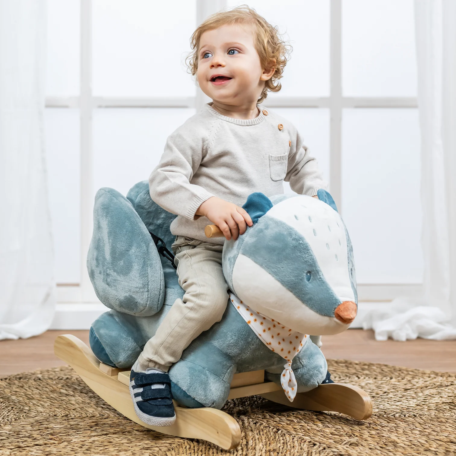 Karrigeja lëkundëse Felix, vjedulla, është shoku ideal i lojës për fëmijën tuaj dhe një tërheqës i vërtetë në çdo dhomë foshnje. Karriga lëkundëse ka një ndenjëse me mbushje të butë dhe mbështetëse anësore që e rrethojnë plotësisht trupin e fëmijës suaj. Dorezat prej druri janë të dizajnuara për duar të vogla. Fytyra e adhurueshme e Felix, veshët e butë dhe krifa magjepsëse janë të dashura nga duart e vogla kurioze. Baza e gjerë dhe mbështetëset e këmbëve ofrojnë stabilitet shtesë.