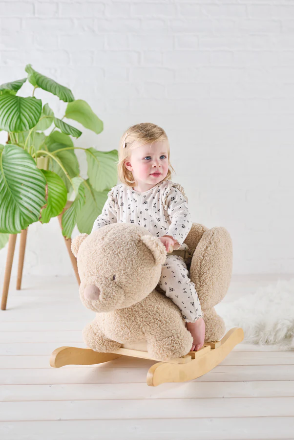 Një ulëse lëkundese që sjell qetësinë në çdo moment. Lëkundësja vjen në nuancë të lehtë të bezhës pastel, me formën elegante të arushës që tërheq vëmendjen e më të vegjëlve. Formulimi i butë dhe i lehtë e bën atë një shoqe ideale për karrocë, krevat apo karrige, duke sjellë rehati dhe argëtim në udhëtimet e përditshme. Forma të kapshme si veshi, bishti apo trup i butë i ofrojnë fëmijës mundësi për zhvillim shqisor dhe motror, duke inkurajuar prekjen dhe ndërveprimin, në çdo prekje delikate dhe të sigurt.