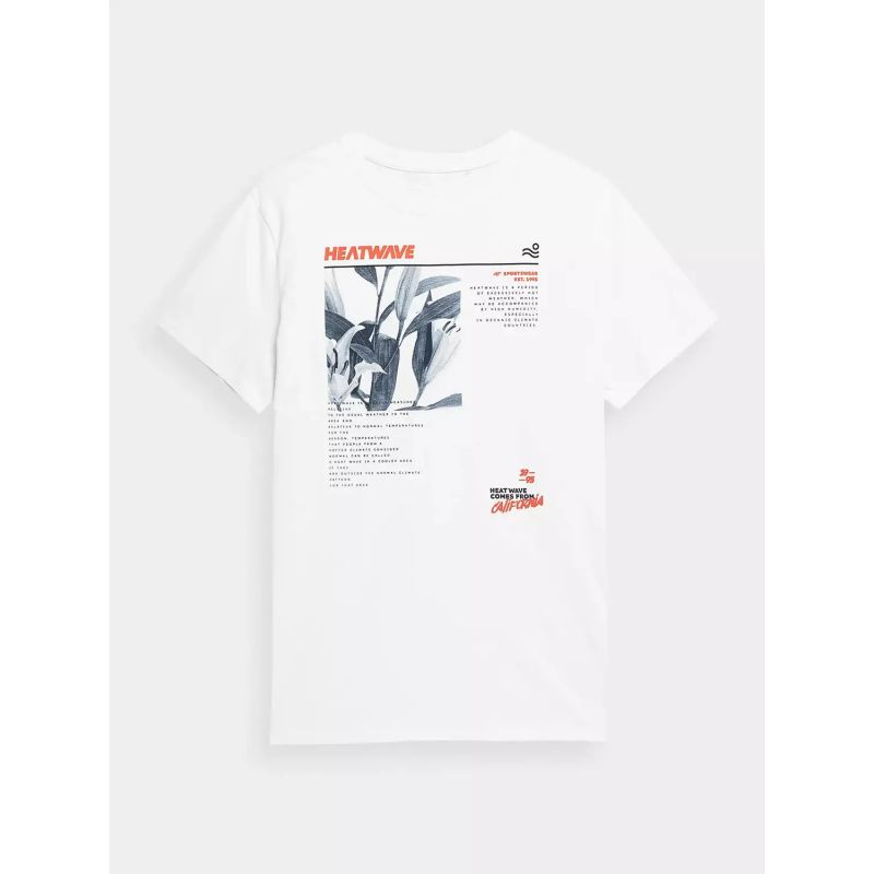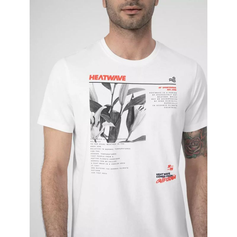 Maicë për meshkuj 4F, dizajn klasik sportiv me prerje të rregullt dhe jakë të rrumbullakët. Ngjyrat universale e bëjnë të lehtë për t'u kombinuar me çdo veshje. Materiali kryesor, pambuku, siguron frymëmarrje dhe ndjesi të këndshme në prekje. Ngjyra e bardhë e pastër shton elegancën dhe freskinë në stilin tuaj sportiv. E përkryer për çdo aktivitet apo përditshmëri, kjo maicë ofron rehati dhe stil të qëndrueshëm.