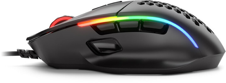 Maus lojërash jashtëzakonisht i lehtë dhe ergonomik me lidhje pa vonesa dhe performancë të shpejtë rrufe, i paketuar në një kornizë më të vogël me një sensor të patentuar BAMF. Falë trupit unik "të shpuar", mausi është shumë më i lehtë dhe më i shpejtë. Dizajni i mausit është frymëzuar nga huallat e mjaltit. Falë dizajnit me vrima, duart tuaja nuk do të djersiten aq shumë, sepse ka ende fluks ajri dhe nuk keni pse të shqetësoheni për mirëmbajtjen, sepse mund të pastrohet lehtësisht.