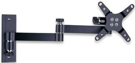 Mbajtës monitori i zi i montuar në mur për monitorë ose televizorë 13–30", mbështet ngarkesë deri në 15 kg, i pajtueshëm me standardet e montimit VESA 75x75 dhe 100x100, ofron anim ±15° dhe rrotullim 180° për kënd optimal shikimi, distancë të rregullueshme nga muri midis 81–390 mm, ideal për kursimin e hapësirës dhe përmirësimin e ergonomisë së hapësirës së punës.