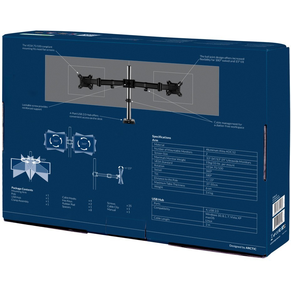 Mbajtëse për dy monitorë ARCTIC Z2 Gen 3- E zezë