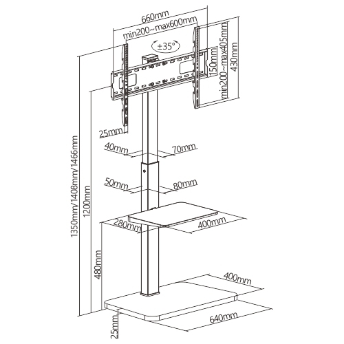 Mbajtëse për TV Brateck FS32-46W, 37"-75", 40 kg