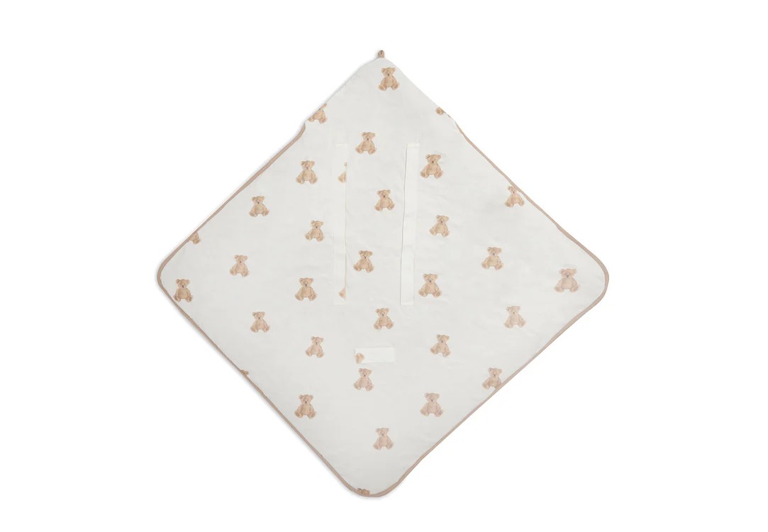 Mbështjellësja dhe pllafi Teddy Bear është një aksesor i gjithanshëm për foshnjat, i përshtatshëm për mbështjellje, mbulim gjatë gjidhënies ose si batanije e lehtë. E bërë nga pambuku i butë dhe i ajrosshëm, kjo mbështjellëse ofron rehati dhe siguri për lëkurën e ndjeshme të foshnjës. Dizajni me motiv arushi teddy në ngjyra neutrale i shton një pamje të lezetshme dhe të ngrohtë. Madhësia e saj e përshtatshme e bën të lehtë për t’u palosur dhe transportuar në karrocë ose çantë. Mbështjellësja lahet në makinë, duke ruajtur butësinë dhe cilësinë pas larjeve të përsëritura. Ky produkt është ideal për prindërit që kërkojnë një zgjidhje praktike dhe estetike për kujdesin e foshnjës.