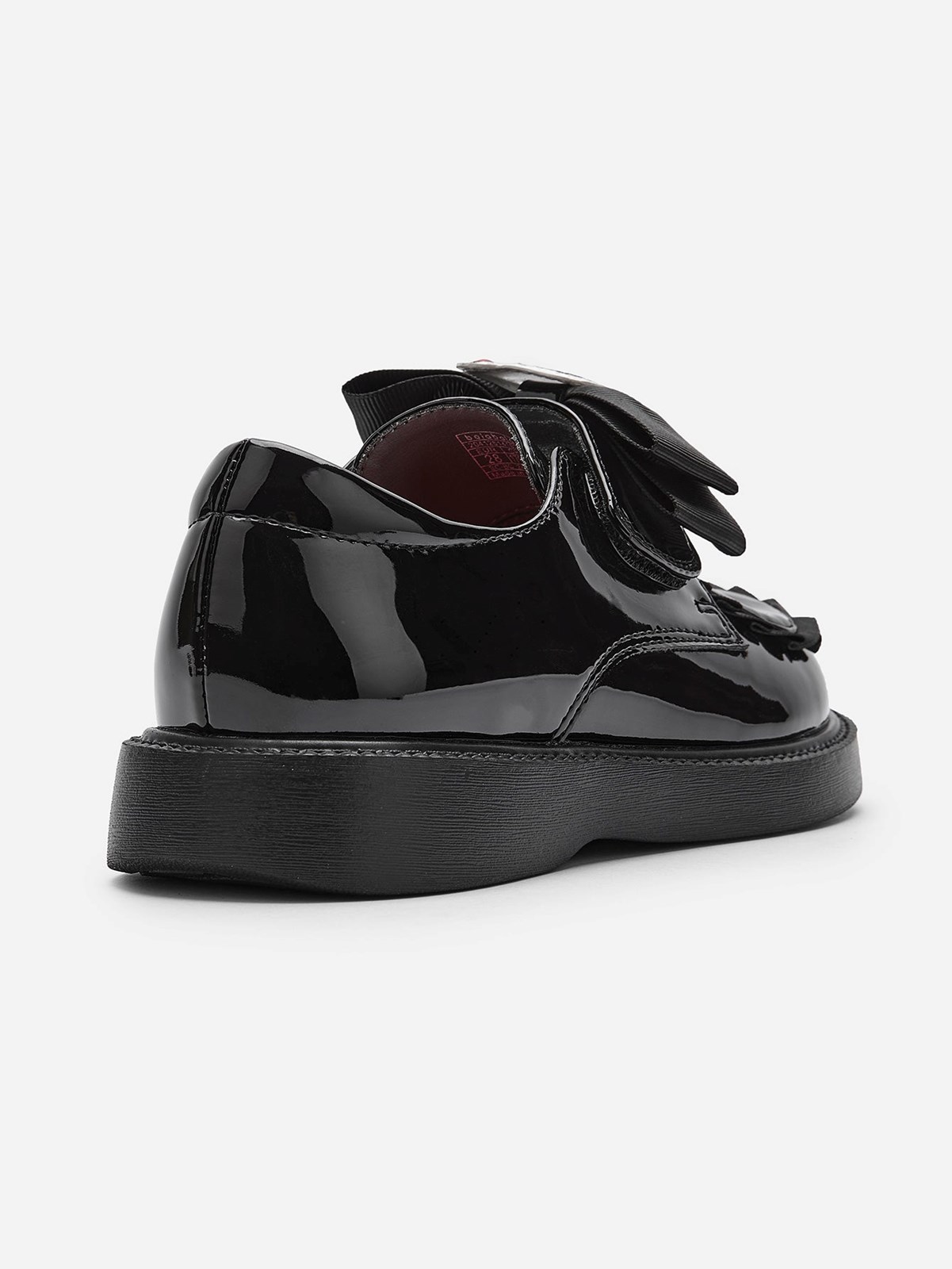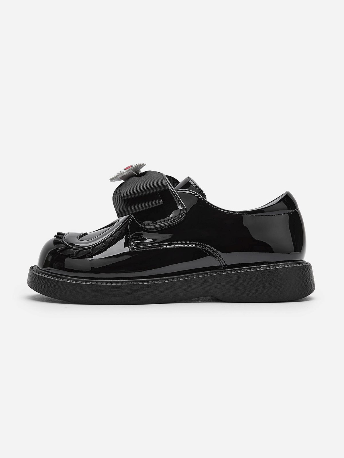 Add a touch of sophisticated charm with the Hello Kitty Glossy Bow Loafers! These stylish patent leather shoes feature a sleek black finish with a statement Hello Kitty bow accent, blending classic elegance with playful details. The sturdy non-slip sole ensures durability, making them perfect for both casual outings and special occasions. Features: Premium glossy patent leather for a chic and polished look Adorable oversized bow with Hello Kitty charm Soft cushioned insole for all-day comfort Durable, non-slip sole for extra stability Easy slip-on design for effortless wear Perfect for little trendsetters who love classic style with a fun twist!