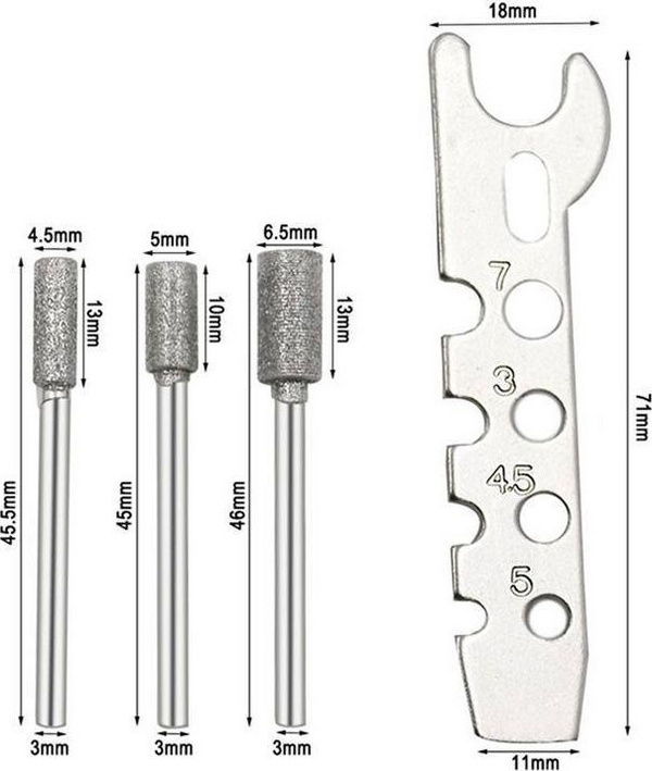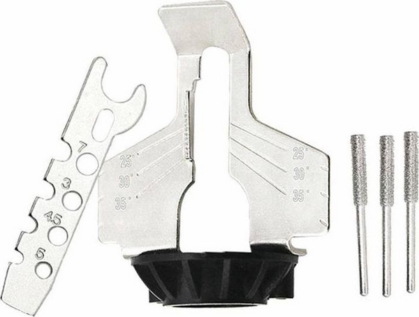 Mprehëse për sharra universal kompakt me shkallë. Ndërtimi i lehtë dhe i qëndrueshëm mundëson mprehje të shpejtë të zinxhirit gjatë pushimeve nga puna. Mprehësi është i pajtueshëm me shumicën e sharrave me dy vrima. Mjeti ka një dorezë montimi që lejon vendosjen e tij në mulli. Pajisur me 3 rula bluarjeje të zëvendësueshme me diametër 4,5 mm, 5 mm dhe 6,5 mm.