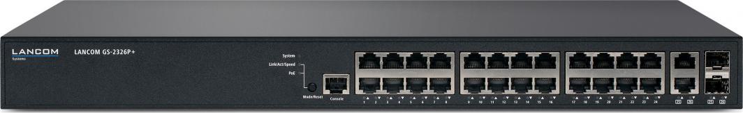 Ky ndërprerës nga marka Lancom Systems GS-2326P është i pajisur me 24 porte Gigabit Ethernet dhe 2 porte SFP. Falë fuqisë totale prej 185 Watt PoE, mund të përdorni pajisje shtesë pa furnizime të panevojshme me energji elektrike. Ai ofron një shpejtësi prej 52 Gbps, xhiro prej 38,7 mpps dhe 8000 hyrje në tabelën MAC. Ai gjithashtu ka mbështetje për kornizën jumbo. Ndërprerësi siguron funksionim të lehtë me një shkallë të lartë sigurie dhe është ideal për rrjetet profesionale të korporatave.