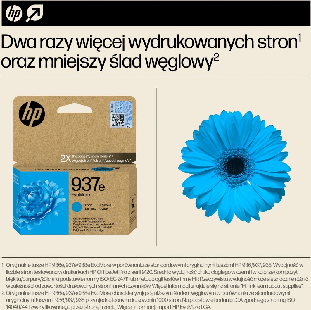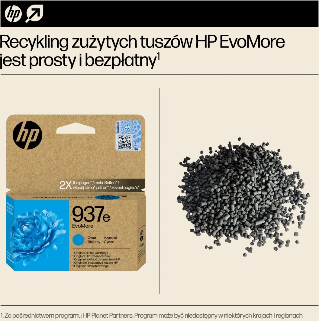 Ngjyrë HP EvoMore 937e është projektuar për printime biznesi me volum të lartë duke pasur parasysh qëndrueshmërinë. Ai printon dy herë më shumë faqe se fishekët standardë duke reduktuar gjurmën e karbonit. E përputhshme me HP OfficeJet Pro 9120e, 9130e, 9720, 9730 dhe modele të zgjedhura. Jep afërsisht 1650 faqe me performancë të qëndrueshme dhe me cilësi të lartë. Lehtësisht i riciklueshëm përmes programit HP Planet Partners për asgjësim miqësor ndaj mjedisit. Blini dhe regjistrohuni për të kontribuar në mbjelljen e pemëve me Fondacionin e Ditës së Arborit.