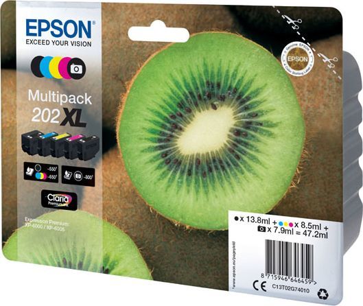 Ngjyra origjinale Epson C13T02G74010 (202 XL) është projektuar për printerët Epson XP-6000 dhe XP-6005, duke ofruar një set CMYK (cian, magenta, verdhë, e zezë) plus e zezë foto për printime me cilësi të lartë. Kapaciteti përfshin 1x13.8ml për të zezën foto, 1x7.9ml për të zezën standarde dhe 3x8.5ml për ngjyrat cian, magenta dhe verdhë, duke siguruar sasi të mjaftueshme për printime të gjata dhe të detajuara. Kjo kartushë garanton ngjyra të gjalla dhe të sakta, ideale për dokumente dhe fotografi me rezolucion të lartë. Përputhshmëria me modelet specifike të Epson siguron instalim të lehtë dhe performancë të qëndrueshme. Ngjyra e zezë dhe shumëngjyrëshe e paketimit reflekton cilësinë premium të produktit nga Epson. Është zgjedhja perfekte për përdoruesit që kërkojnë rezultate profesionale nga printeri i tyre.