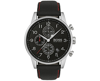 Përjetoni elegancën dhe ndjehuni bukur me orën analoge të dizajnuar për meshkuj nga Boss, e cila vjen e kombinuar me një brez me dizajn të thjeshtë me material nga lëkura. Ky aksesor plotëson çdo veshje në përsosmëri sepse është kombinim i rripit me ngjyrë të zezë me tegela të kuq dhe me kornizë ngjyrë argjendi, kombinime këto që ndërthuren mjaft bukur dhe japin ndjesi të këndshme. Ky aksesor është rezistent ndaj ujit, ka tre kronograë dhe mekanizëm të modelit QUARTZ d.