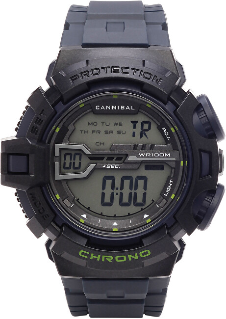 Ndjehuni bukur me orën digjitale të dizajnuar enkas për meshkuj nga Cannibal. Korniza prej çeliku dhe plastika plotësuar me shtresë PVD vjen me ngjyrë të zezë dhe lidhet me një rrip të zi prej gome me cilësi të lartë. Ju do të admironi këtë orë për shkak të karakteristikave që ka ajo, si për shembull, një kalendar plotësisht automatik, një kronometër, një alarm ditor dhe ndriçim. Sportistët e sporteve të ujit do të vlerësojnë rezistencën ndaj spërkatjeve deri në 100 metra, falë të cilës mund t'a mbani edhe gjatë zhytjes. Merrni shoqëruesin e përsosur për aktivitetet tuaja dhe jini gjithnjë i gatshëm.