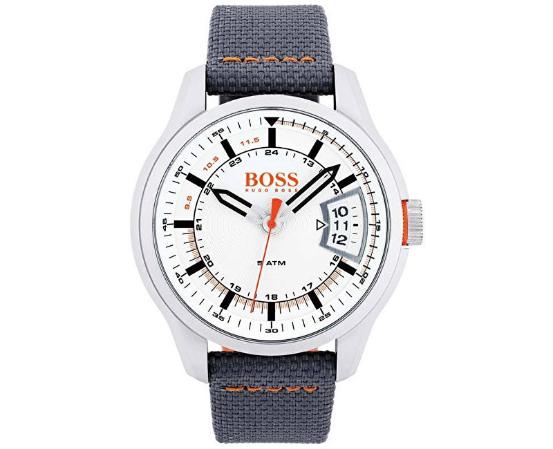 Përjetoni elegancën dhe ndjehuni bukur me orën e dizajnuar enkas për meshkuj nga Hugo Boss, e cila vjen e kombinuar me një brez nga najlloni me ngjyrë të hirtë dhe kornizë nga çeliku cilësor. Pjesa e brendshme me ngjyrë të bardhë kap një dizajn të bukur me indekse e akrepa të thjeshtë, kalendaer dhe detaje portokalli të cilat gjenden edhe në rripin elegant. Ky aksesor është rezistent ndaj ujit deri në 5 ATM/5 BAR dhe ka mekanizëm të modelit Quartz. Plotësoni pamjen tuaj dhe vëjeni në pah stilin tuaj unik duke filluar nga detajet dhe aksesorët si kjo orë.