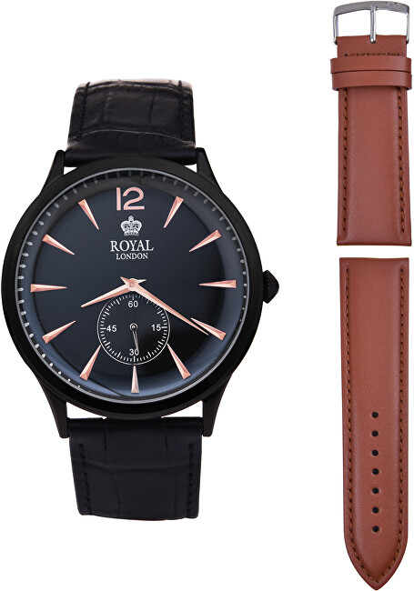 Orë dore me dizajn unik nga marka e njohur britaneze Royal London për meshkuj. Vjen e punuar me kornizë të çelikut me prarim në PVD, ka rripa të lëkurës së zezë dhe hapësirë të brendshme të mbuluar me qelq mineral e cila dekorohet me indekse & akrepë dallues me ngjyrë rozë të artë. Ora ka dimensione 43 x 50 x 10 mm, është rezistente ndaj spërkatjeve deri në 3 BAR/30 m dhe punon me mekanizëm të modelit Quartz me bateri. Kompletoni dukjen tuaj me këtë aksesor klasik!